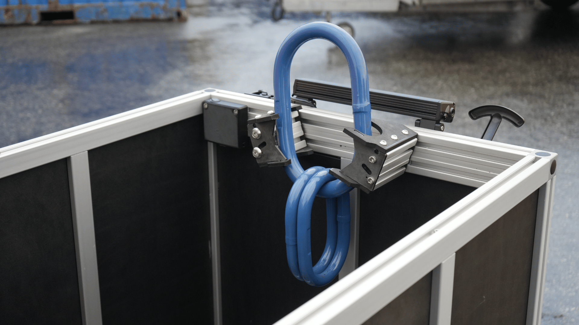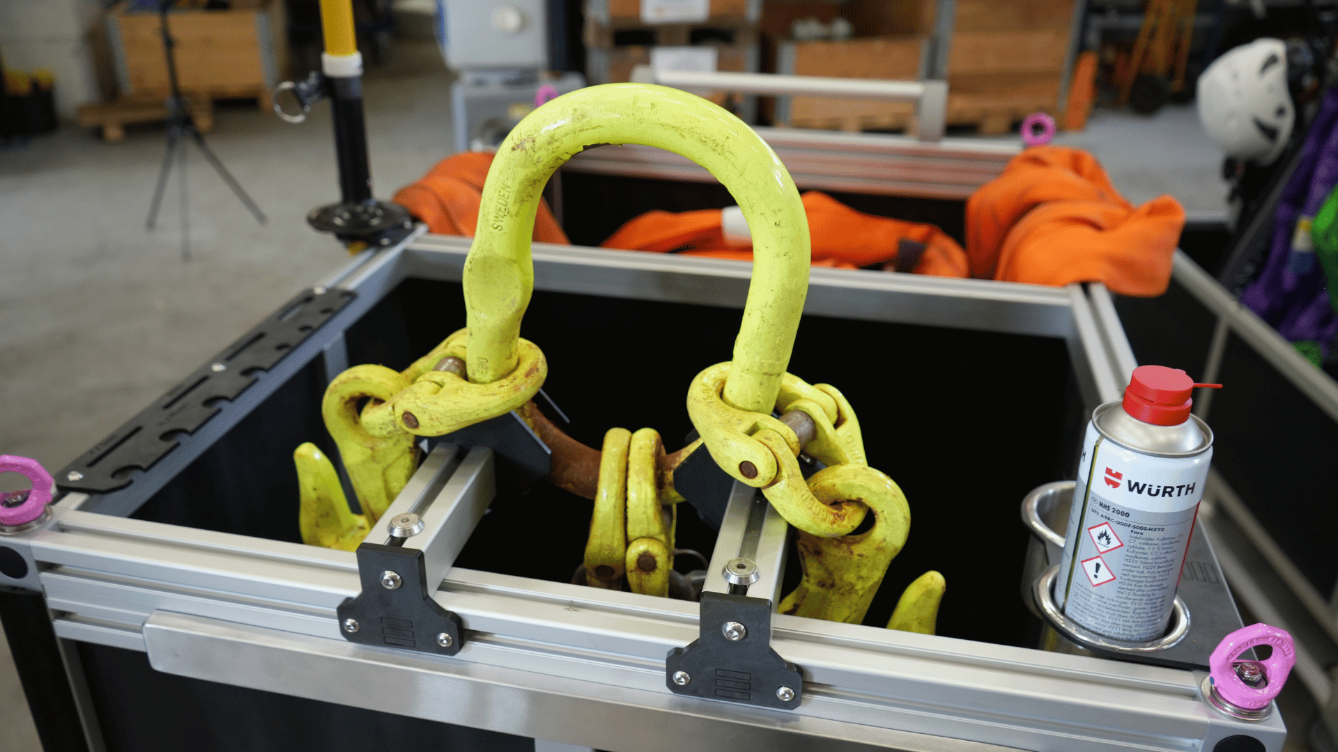 Sikker og smart opbevaring af kædesæt og løftegrej. Slut med at skulle fiske kædesæt op af kassen - Xchain har en ophængskrog, så du hurtigt kan få fat.