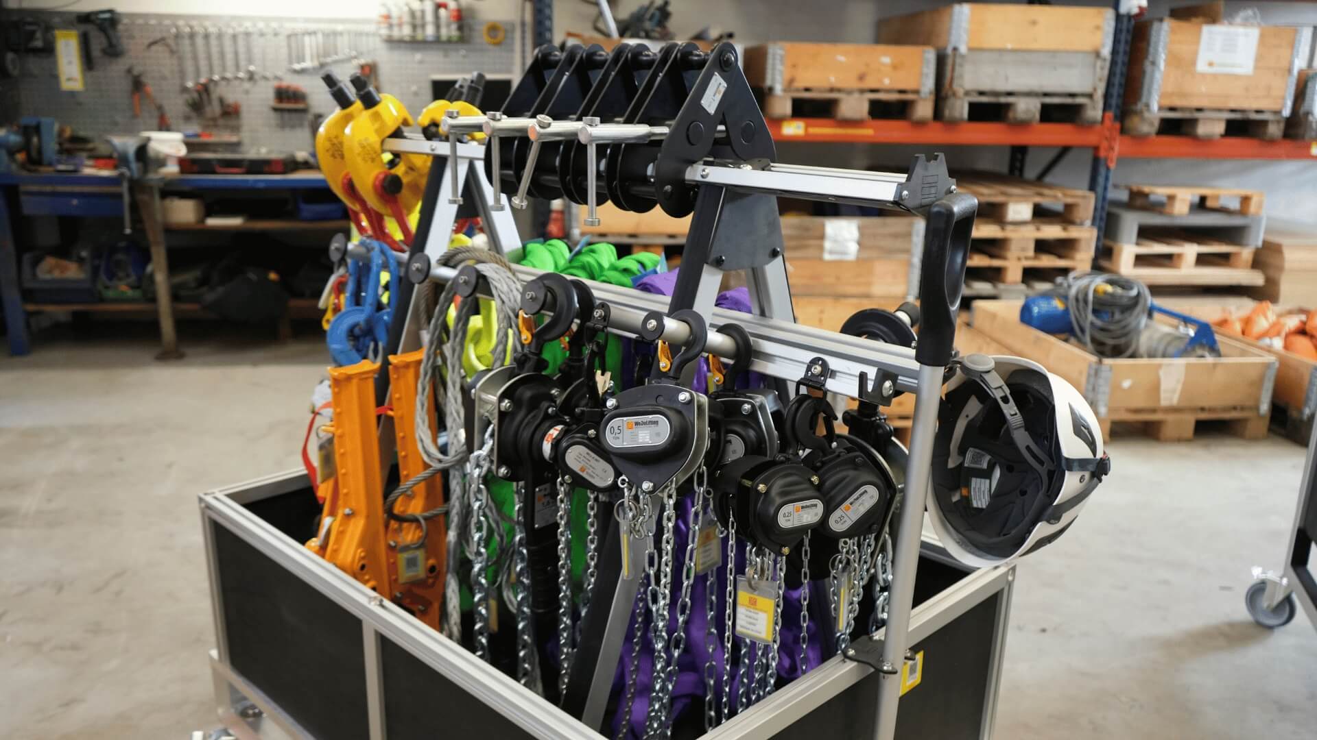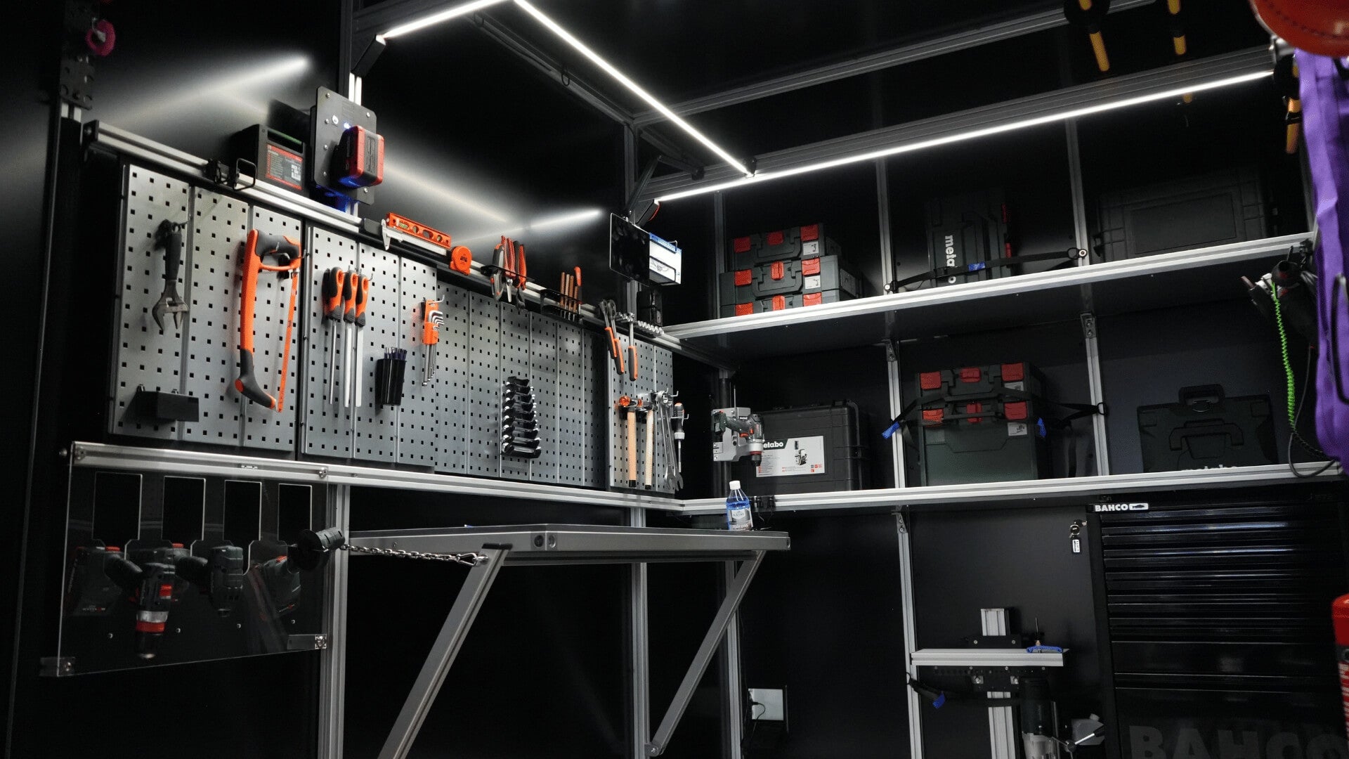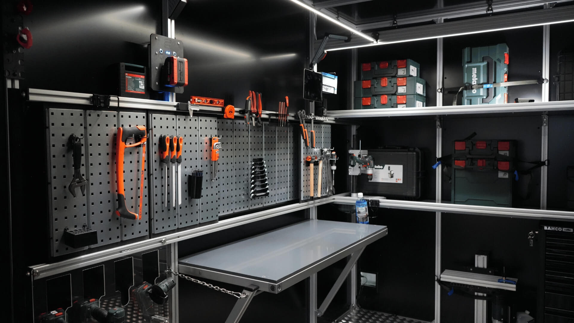 Før var containerindretning låst fast på én måde og til én container. Det vil vi ændre på. Profilerne spændes op mellem gulv og loft og fra væg til væg, og på den måde kan det hurtigt ændres og tages ud af containeren igen.