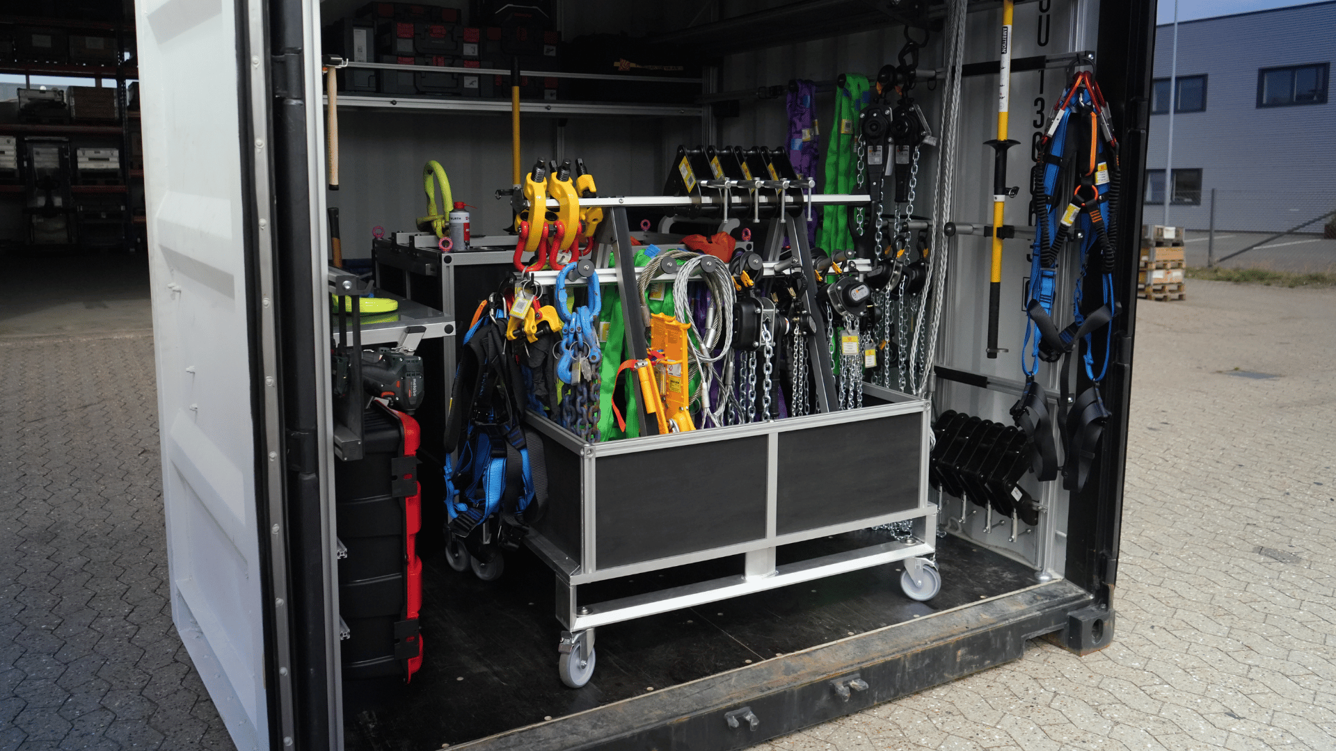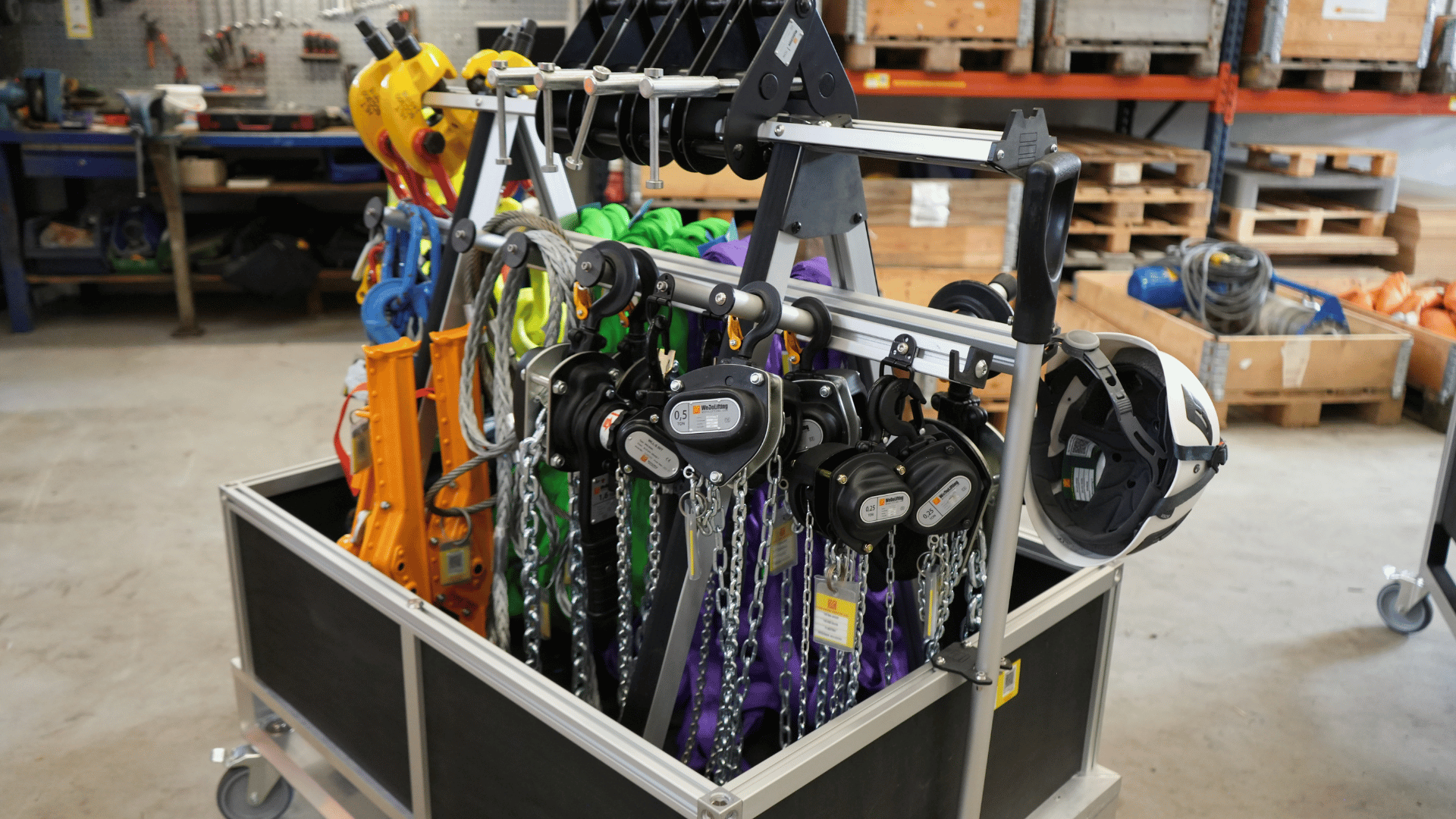 Xrack er sikker og smart opbevaring af løftegrej og udstyr. Hold orden og pas på udstyret, når det ikke er i brug. Den flytbare vogn er en god hjælper ude i felten.
