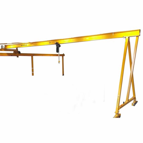 ERIKKILA portalkraner fås med begge kørebaner på gulvet eller med én kørebane (semiportalkran). Semiportalkraner anvendes ofte som løftekraner under større traverskraner. Portalkransystemer kan leveres for både stationær og mobil anvendelse (på hjul med bremser). Desuden kan de udstyres med wire eller kædetalje.