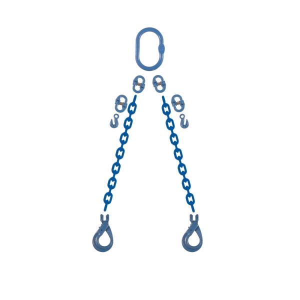 2-strenget kædesæt med opkorter fra vores eget brand YellowLine - model 2-C-CSK-COK. Dette kædesæt er udstyret med opkorterfunktion (opkorterkrog type COK), længden kan derfor nemt tilpasses til individuelle løft. Alle komponenter i dette kædesæt er udelukkende klasse 10 dele fra vores eget YellowLine brand. Kædesættet er samlet med YellowLine type C ovalring, Yellowline opkorterkrog type COK, Yellowline type CCL samleled, blå Yellowline kæde samt YellowLine CSK sikkerhedskroge i bunden. Kædesættet samles og tjekkes individuelt på vores danske riggerværksteder. Du se tilgængelige dimensioner, kapacitet og bestille i præcis den længde du ønsker i bestillingsmatrixen herunder.