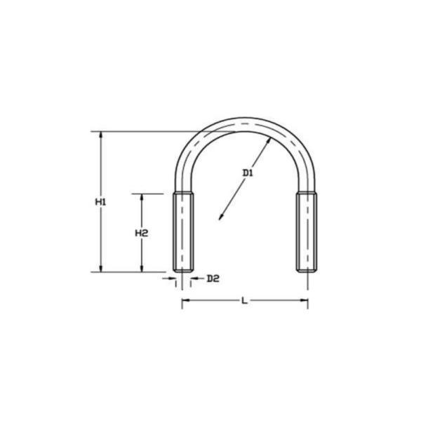 U-rørbøjle. Rundjern med rullet gevind. Model: DVS 31005. Anvendes til rørbæring.