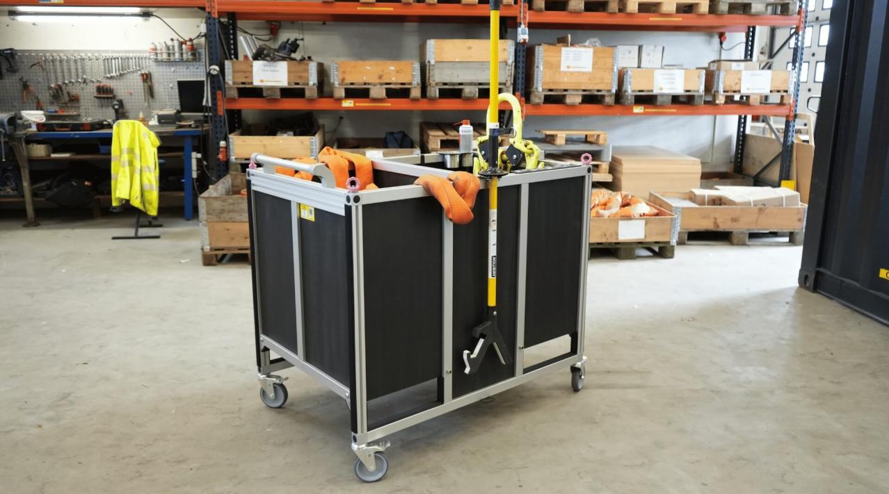 Sikker og nem opbevaring af løftegrej på en flytbar vogn.